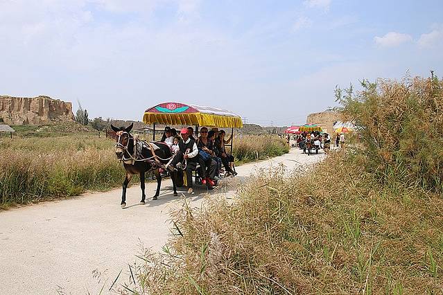 如果水洞沟为起点、影视城为终点连接为一条直线,以这条直线为对角线画一个正方形,那么影视城和水洞沟就是这条对角线上的两个点,影视城在银川的西北角,而水洞沟在银川的东南角;两点的直线距离大约是54公里左右,而这条线的中点正好就处在银川市的中心,所以我们可以大概推测出从银川分别到这两个景点也就27公里左右的车程,而且银川市的马路在全国来说算是很好的了,路很宽,不存在堵车的状况,而且公交也很完善。