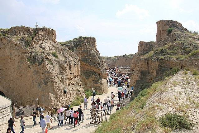 这里就是藏兵洞的入口,至于藏兵洞,肯定是要参观的,我觉得藏兵洞置身于悬崖里面,以及与峡谷组成的整体更有感觉,尤其表现在拍照上,不料在这个峡谷曾拍过好多的电影、电视剧;大家耳熟能详的有《锦衣卫》、《大话西游3》等等。