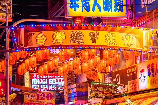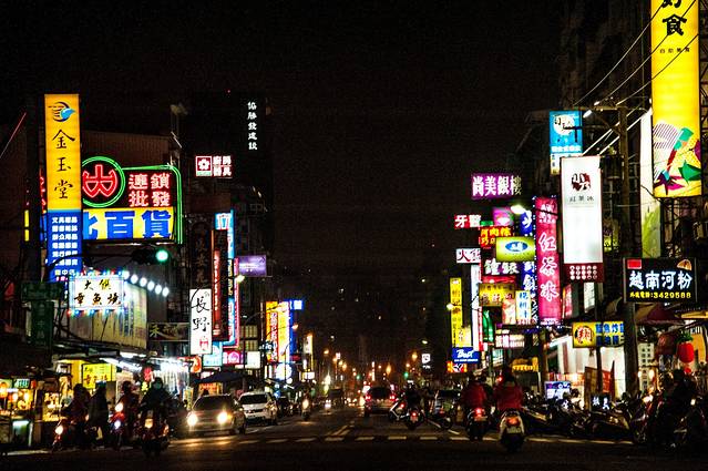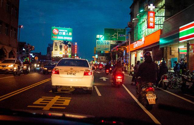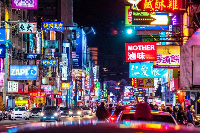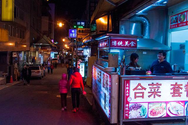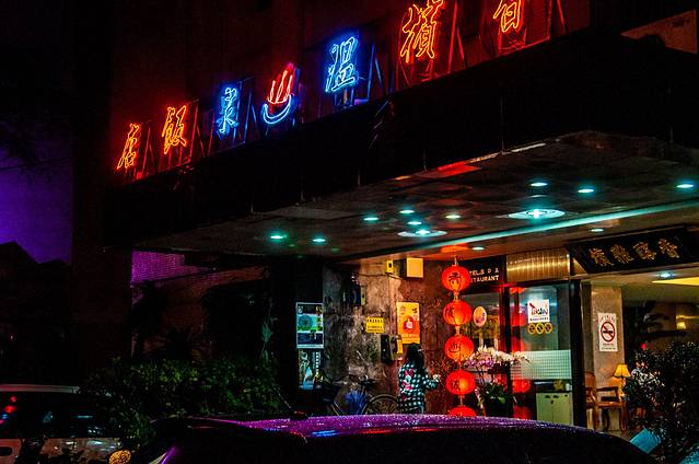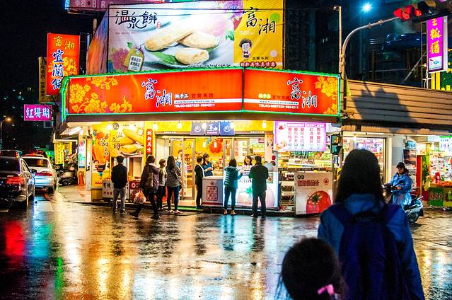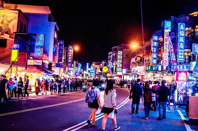 刚下过雨的地面映着七彩的灯光,像一个美丽的调色盘,礁溪作为一个镇,其热闹繁华却也不输台北的一些街区,发展均衡是我对台湾的另外一个印象。换做我是台湾本地人的话,我可能也不会一定要去台北发展,生活在这种小镇上也非常不错。