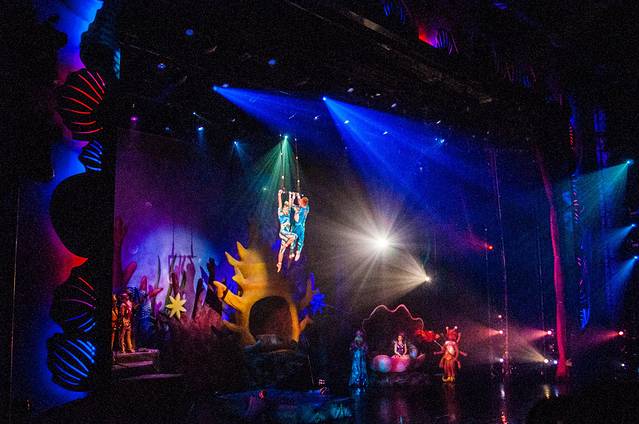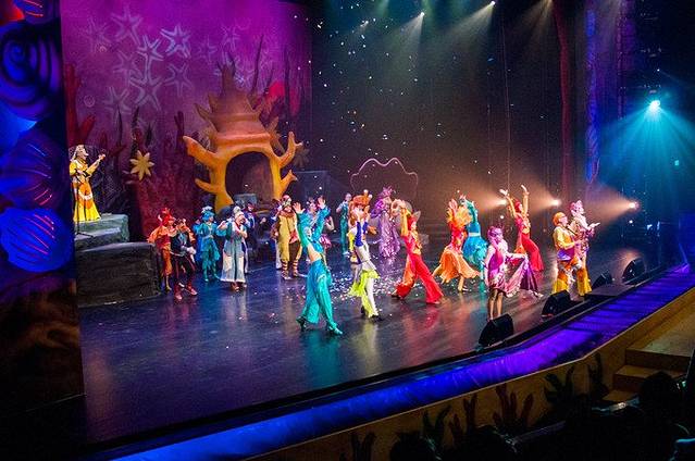 剧场的表演刚刚开始,我们找了几个靠前的位子坐下,整个剧场的布置和节目也都是海洋主题的。