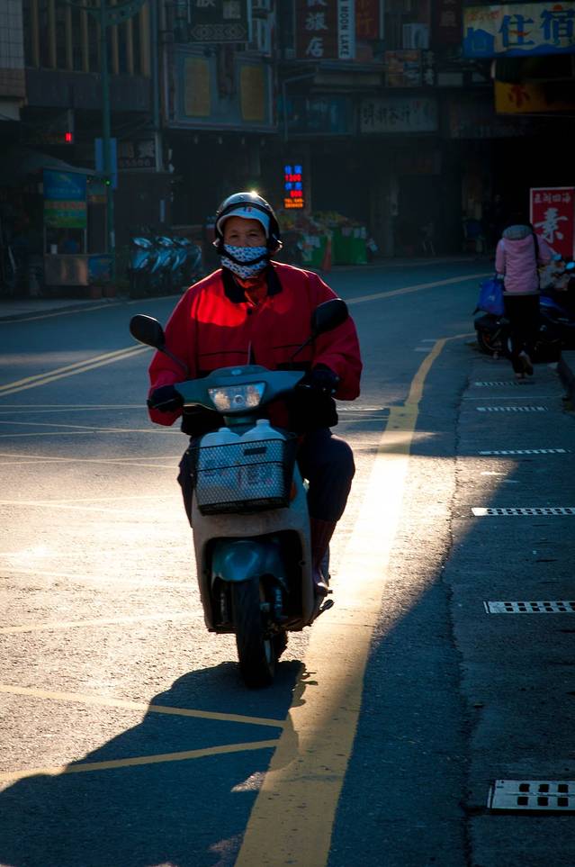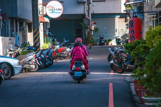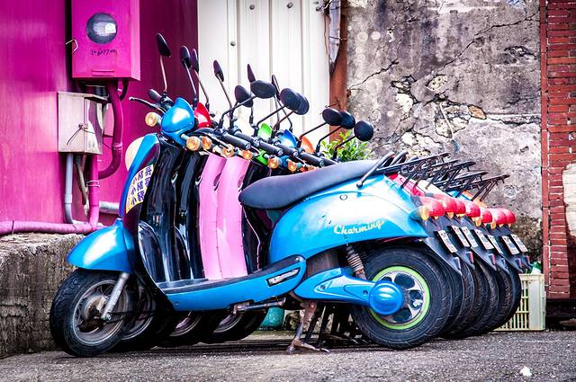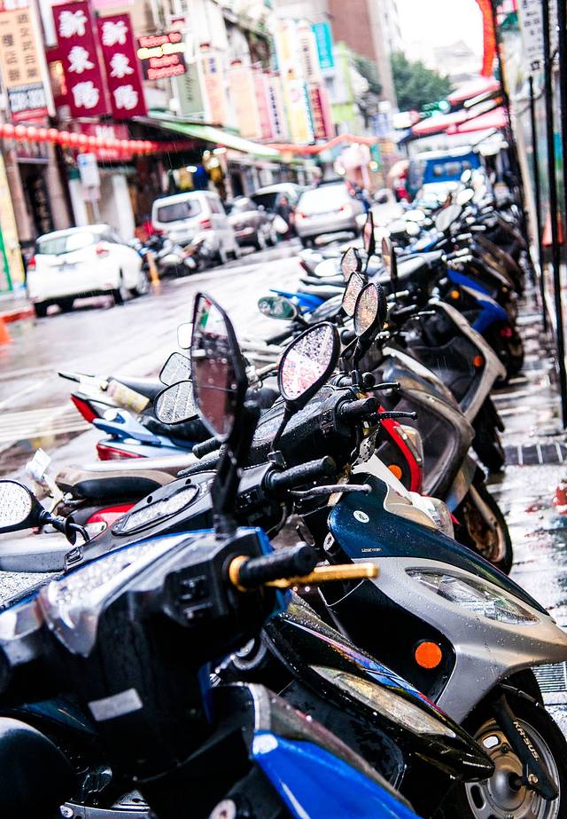 台湾的机车族远近闻名,路边经常看见成排停放的机车。