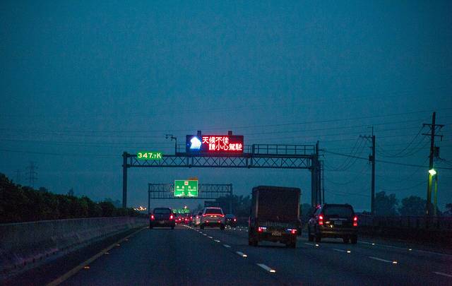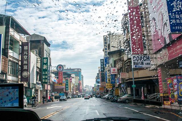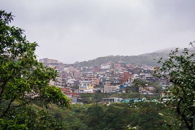 高速公路上雨很大,好在此时已经对路况和车况非常熟悉。我们从台北市外围擦肩而过,上午我们准备再去一个地方——位于台北东北方向的九份。