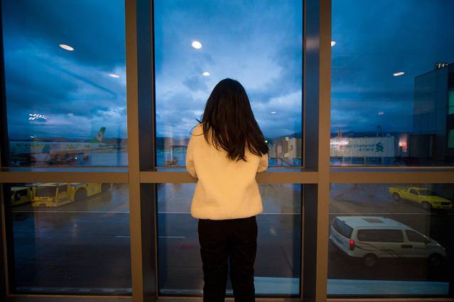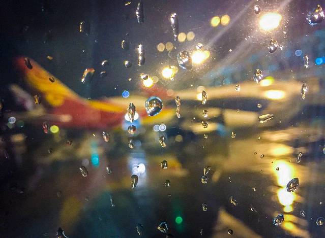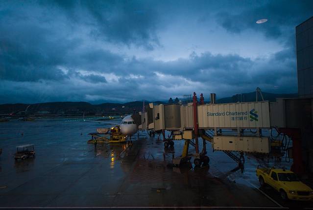 飞机还在跑道上滑行,我们便看到了舷窗上和起飞时一样的雨滴,仿佛我们还在上海。小语比我预想的情况好多了,凌晨的桃园机场里她还是显得很兴奋,一直走在前面。