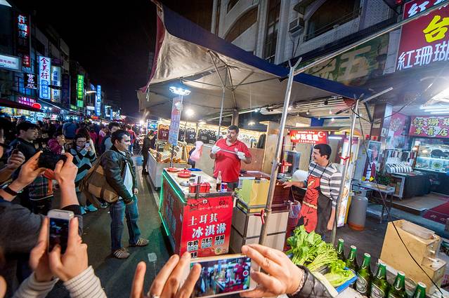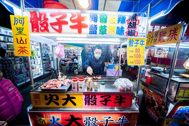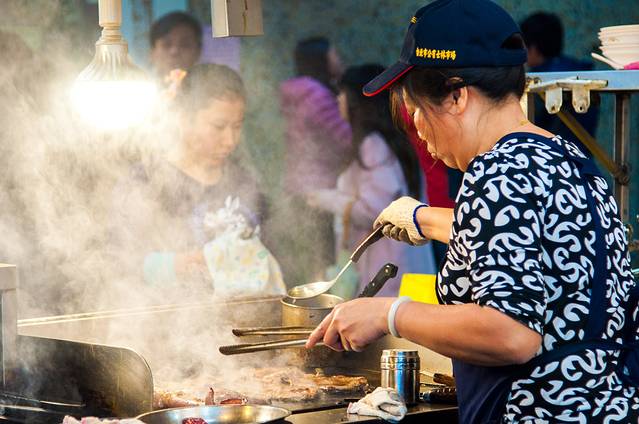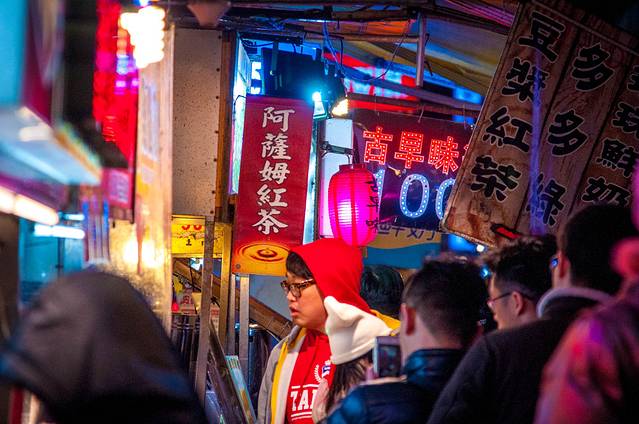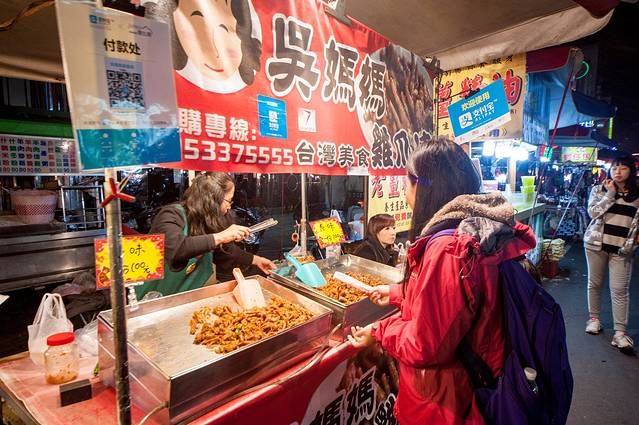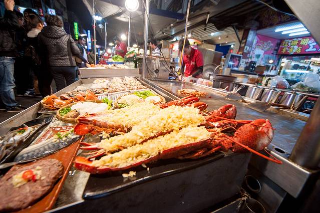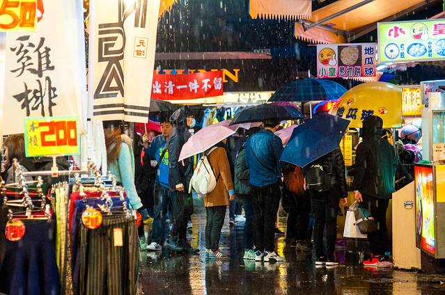 雨水也未浇灭游人逛夜市的热情,士林夜市非常大,有人说从头吃到尾每天吃一个摊位的话可以吃一年。