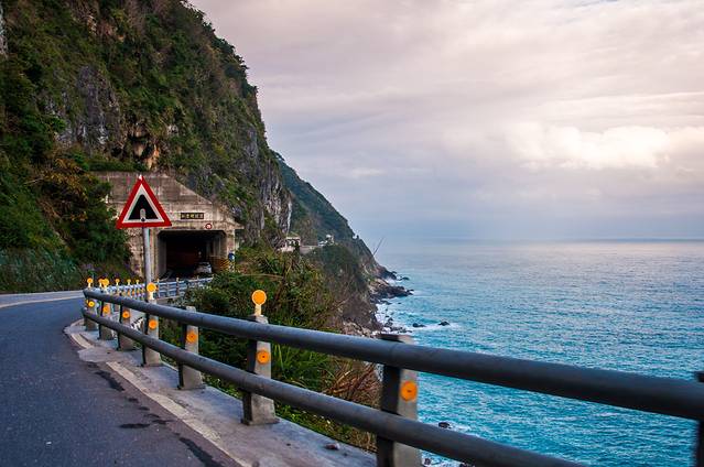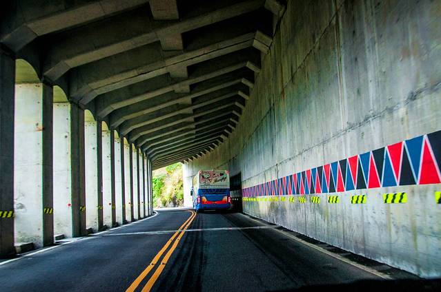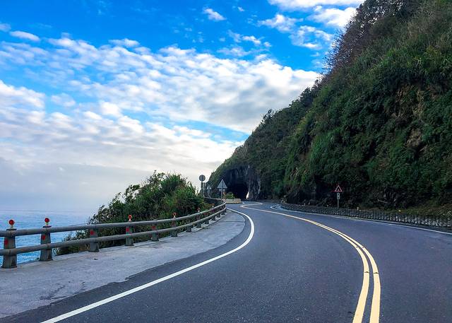 趁着没有来往车辆,站在路中间回身拍一张象鼻子隧道。整体来说苏花公路上的车辆不算太多,如果没有大货车的话,可以开的很悠闲。