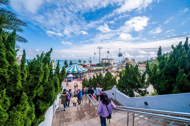 远雄海洋公园依山而建,在缆车上可以俯瞰公园的下半部分。