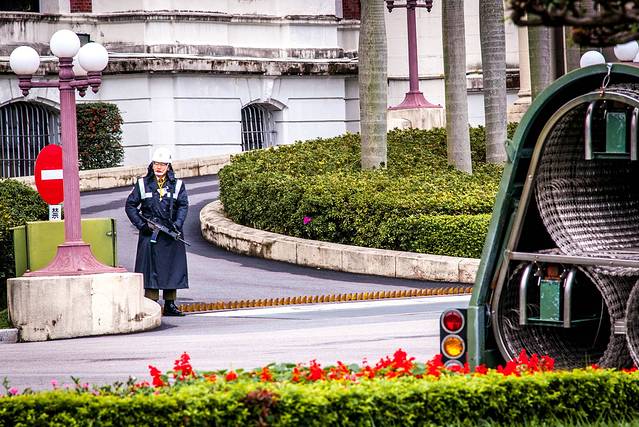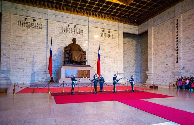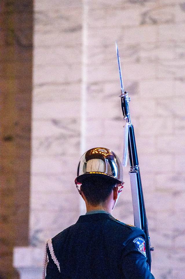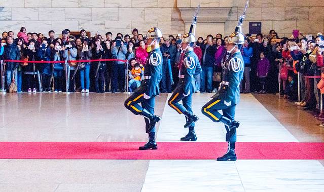 正赶上换岗仪式,中正纪念堂每整点都有卫兵交接仪式,每小时换一次岗,换岗仪式持续约15分钟。