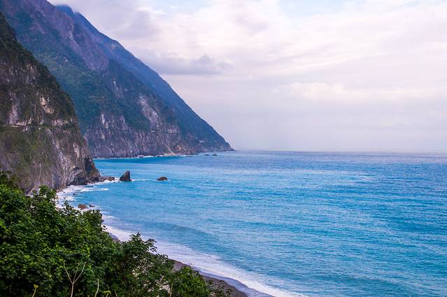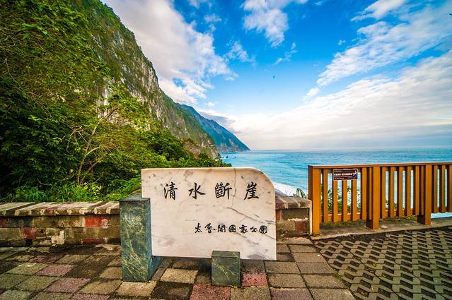 清水断崖,是清水山临太平洋之处的断崖,断崖成接近90度角直插入太平洋,高度均在百米以上。注意清水断崖石碑上的落款,此处也属于太鲁阁公园的一部分。