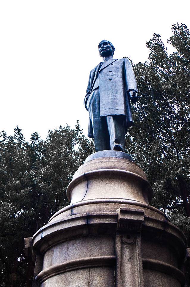 信步游走间,来到一处广场,广场边有一尊孙中山先生塑像,塑像屹立雨中,更显坚毅。