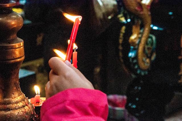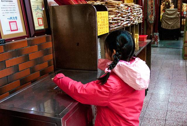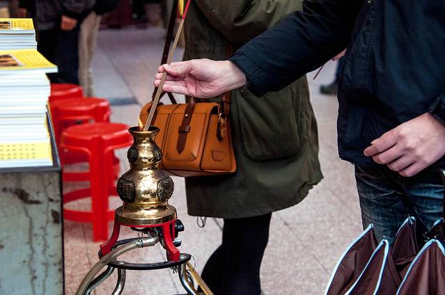 学别人的样子投了几个硬币在箱子里,自行从架子上取了一些香烛,这些香烛在大陆的寺庙里买的话可不便宜。