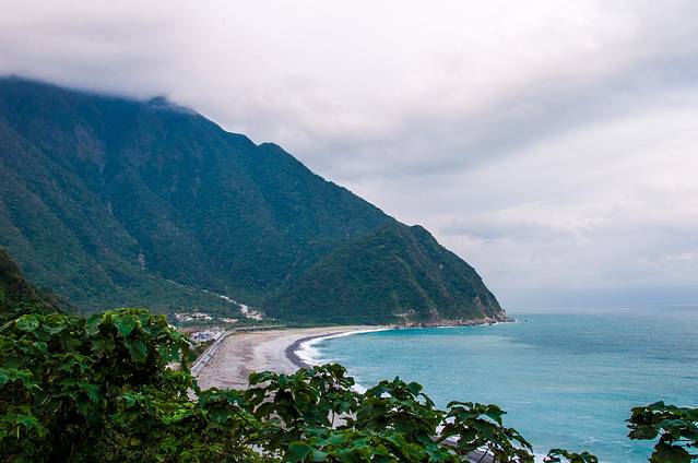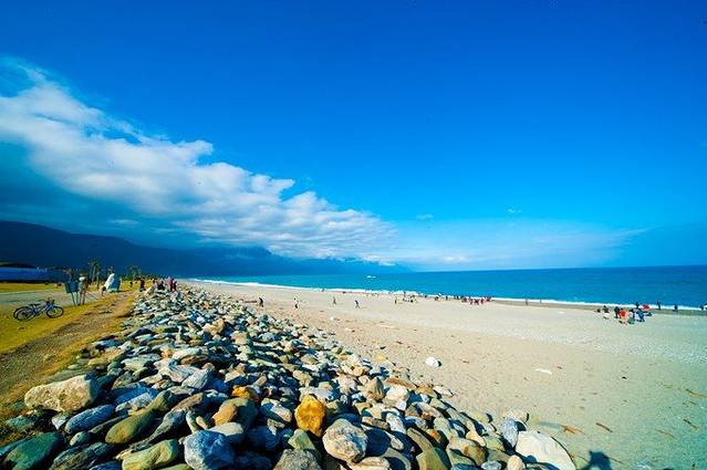 走出花莲不久便来到七星潭景区,七星潭有着长长的沙滩,整个海湾非常漂亮。