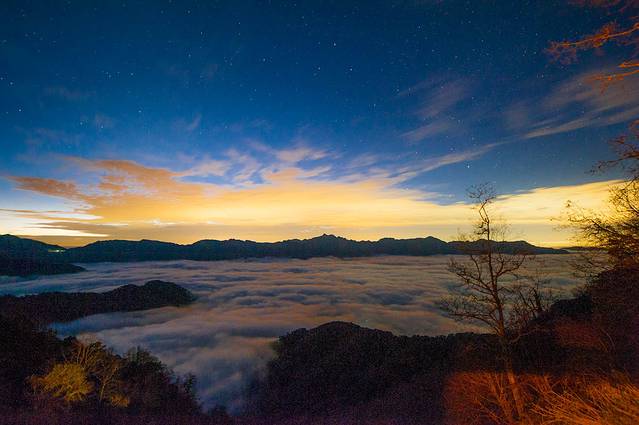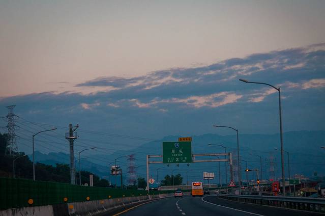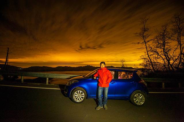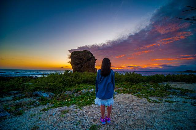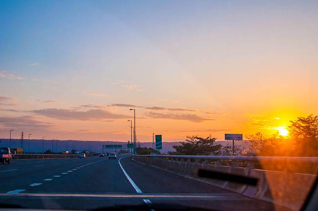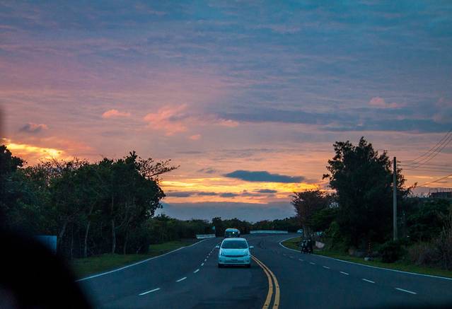 在一停车区停车休息,这时身后的天空霞光渐浓,可惜我们是在东海岸,如果早上五六点钟走苏花公路,海上日出一定非常壮观。