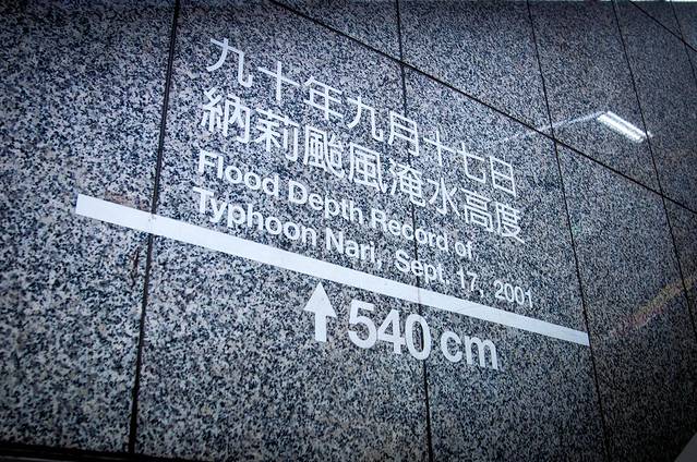 注意看扶梯上方拿手机男士手机位置,那条白线便是当年的水淹线,也就是说,在那一天,这条线以下全部浸泡在5.4米深的水中了。