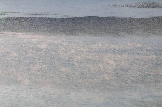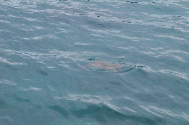 海水仍旧呈现深浅不同颜色的变化,远处的水面映着彩色的天光竟然呈现出五彩的颜色来。