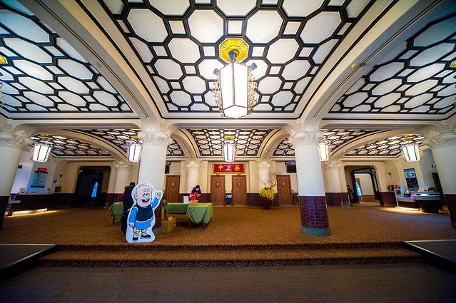 中山堂一楼大厅很漂亮,有日式建筑的特征,事实上我没有猜错,这栋建筑确实是日本殖民时期的产物,建造完工于1936年。