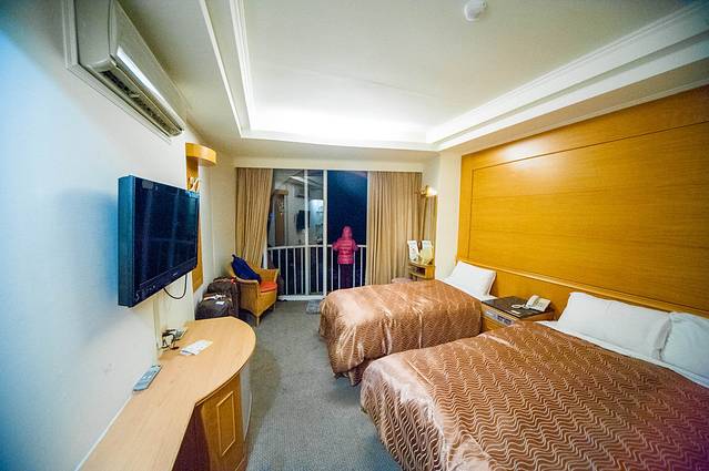 酒店陈设有些陈旧,但是干净整洁,房间也算宽敞。由于我们的转换插头遗忘在了花莲,于是去服务台问,酒店恰好有转换头供应,只需交适量押金便可免费使用。