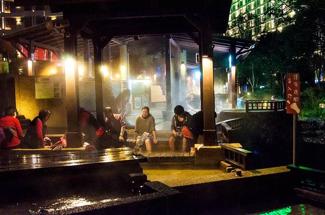 走进路边的温泉公园,发现当地人就这样坐在亭中用温泉泡脚。公园免费、泡脚也免费,这些都是公共设置。