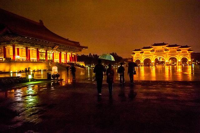 走出场馆的时候,天已经完全黑了。雨中的自由广场安静了下来,雨水淋湿的地面反射着橘黄色的灯光。“冬季到台北来看雨”,孟庭苇的歌声曾陪伴我度过了大学时光,那时身处北方,每年冬天都是冰雪作伴,对于下雨的冬季只是存在于想象里。