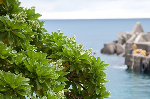 山下便是大海,只是烟雨蒙蒙,只能看见近处的景物。