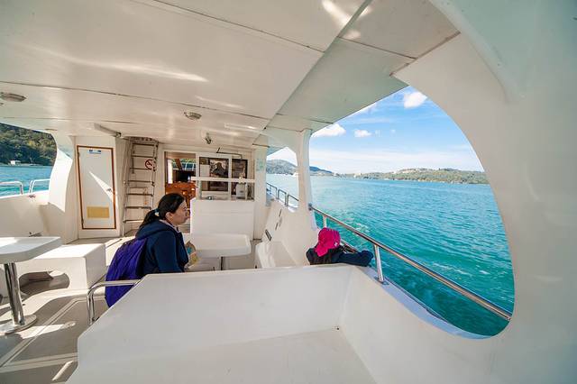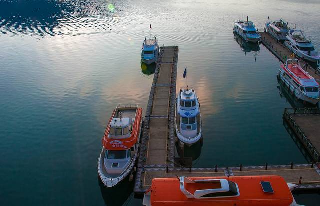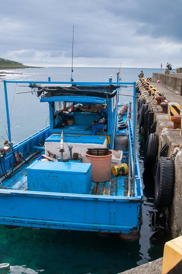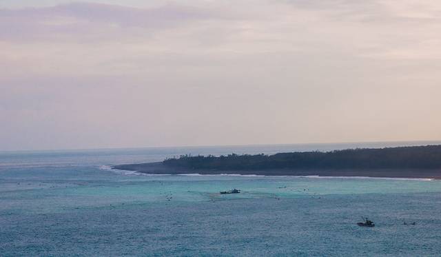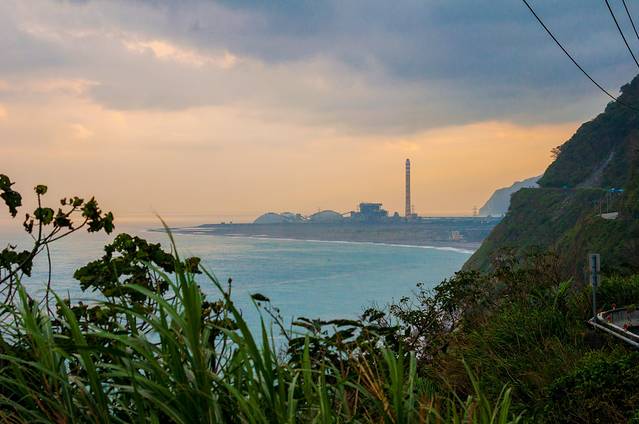回首南方的天空,已经隐约有了晚霞的颜色。水中正在捕鱼的渔船也是清水断崖的一景,这是台湾发明的一种深海捕鱼的网,一般一天会收一次网。
