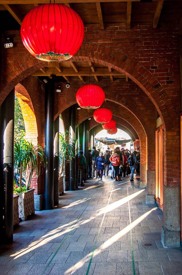 台北101大厦耸立在雨中,变幻着不同颜色的灯光。这是我们今天的最后一站。下沉广场的四周,已经挂上了红灯笼,距离春节还有半个月了,这里已经进入“中国年”时间了。