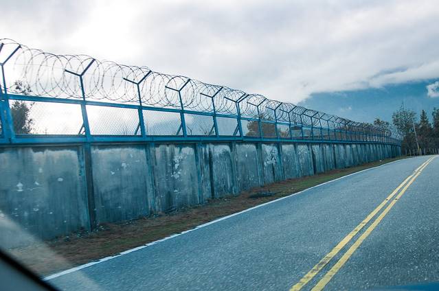 机场离景区只有一墙之隔,墙后面的屋顶便是机库。在从公路上拐弯下到景区时,居高临下可以看到数个机库以及机库中的战斗机,可惜当时霞已经睡着了,没有拍下来。