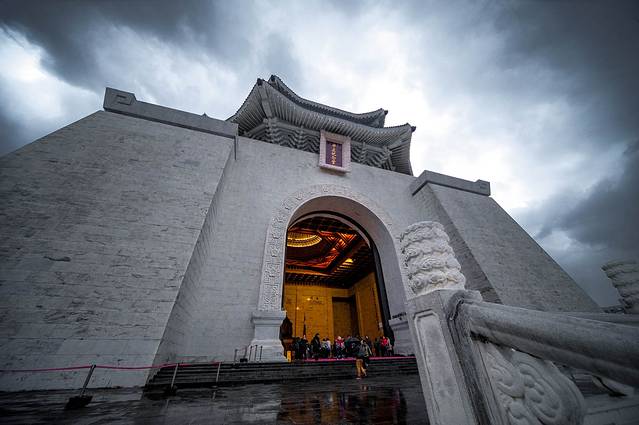 下雨也有下雨的好处,风起云涌中,纪念堂显得气势宏伟,雨水打湿了墙面,让它透出一丝沧桑。