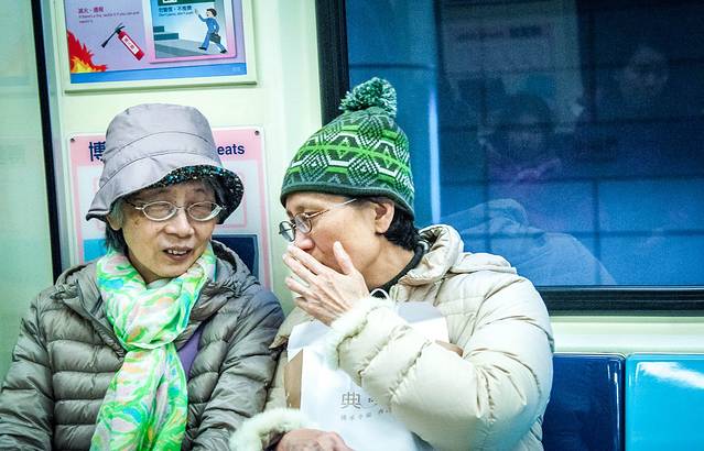 两位阿姨低声的说着话,为防止打扰别人,甚至用手挡住了嘴巴。