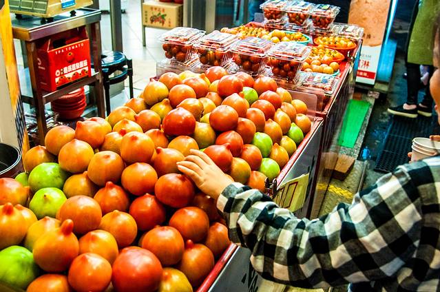 路遇卖番茄的摊贩,西红柿很青,但是看上去很健康,让我想起小时候自家院里种的西红柿,经常只红到这个程度便摘下来吃,味道酸甜浓郁,不似现在催熟的果实,几乎没有了任何的味道。