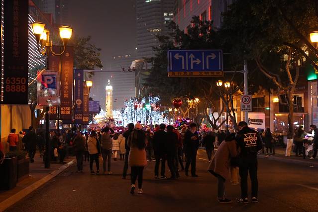 出了公园我们想着去朝天门看看,当天估计跨年的原因全城大堵车,我们就说走着打车吧,越走越堵,好吧我们走路吧