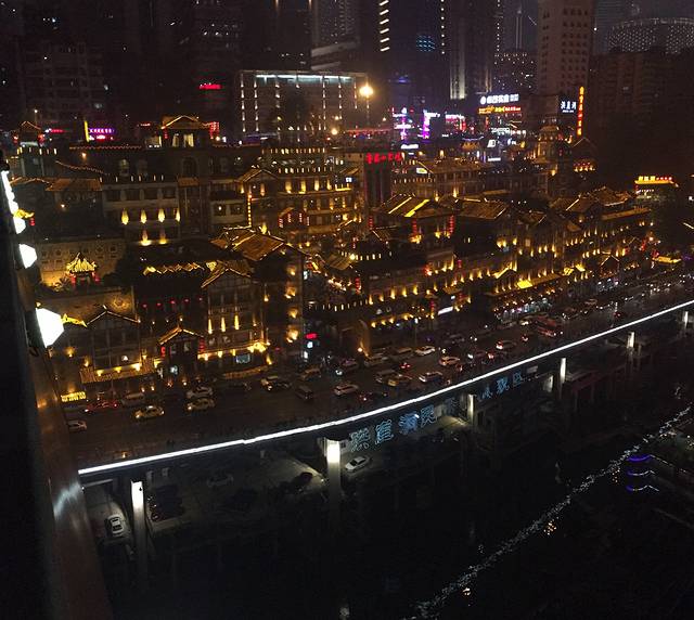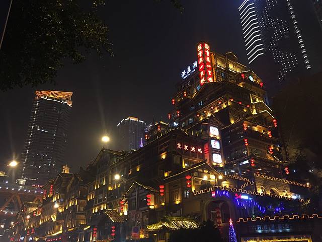 走着走着发现好累啊也打不到车我们决定还是回解放碑休息一下,跟着导航走,坑爹啊,被导航坑得好惨好多绕路啊,于是我们从两路口硬生生得不知道走了多少冤枉路最后才回到解放碑,走路总有意外的惊喜,我们想着要不要去洪崖洞看看,最后绕啊绕不知不觉就到了洪崖洞,好励志的路啊