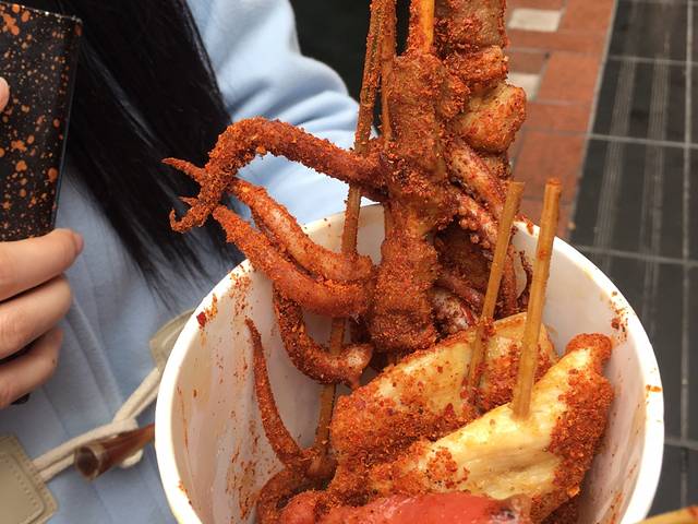 嚯嚯嚯……凯旋而归,吃晚餐去咯,我们选择去洪崖洞吃小吃😄
