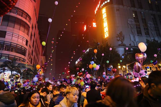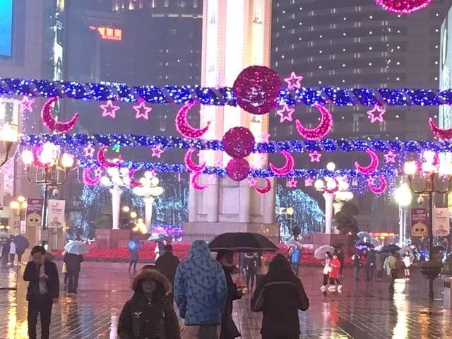 我们在人潮边缘硬生生的都挤不进去困的我不要不要的,硬是带到人潮散去才回去休息,但是好歹这是我第一次在外面感受跨年,还是挺激动的,特别听到倒数5⃣️4⃣️3⃣️2⃣️1⃣️叮咚解放碑的钟声响起,万人倒数万人齐呼,万人齐放手中的气球,这样的画面结束了我一天的重庆之旅