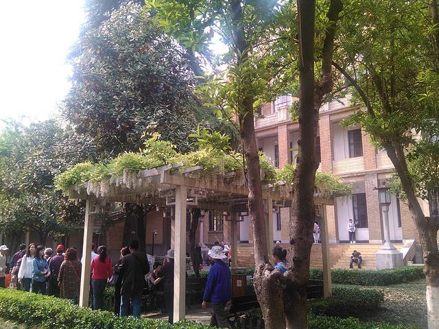 进门后,两边整齐的梧桐。