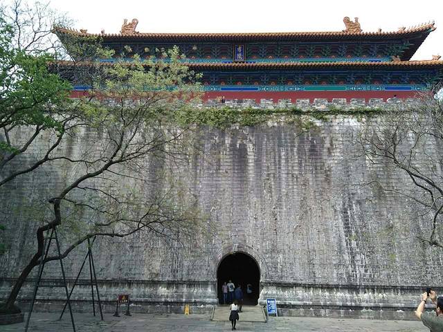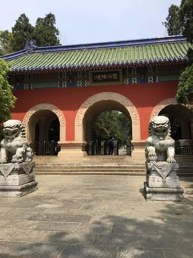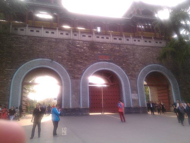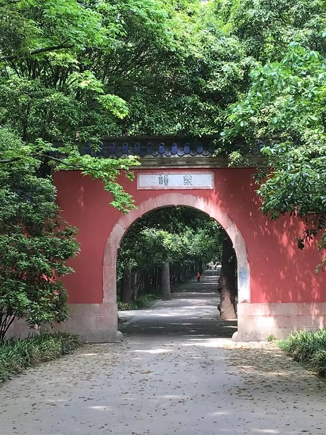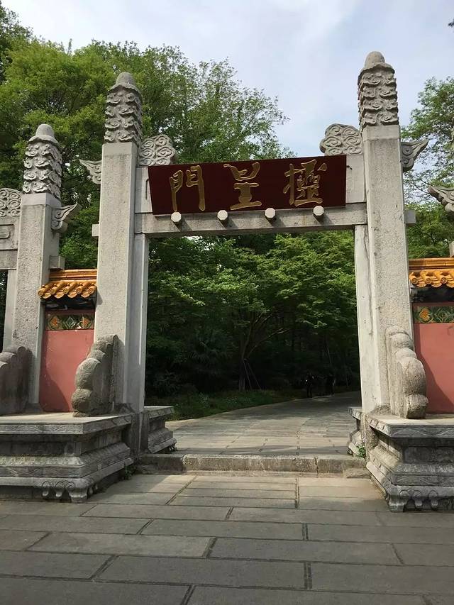 这是红山门。红山门在万工池北侧,这是灵谷景区的大门。红山门最初是明成祖朱棣时所建的金刚殿,现在地上还留有明代金刚殿的柱础。金刚殿在清初的战火中被焚毁,直到光绪十一年(1885),灵谷寺住持光莲在重建寺庙时,将其改作灵谷寺的山门。