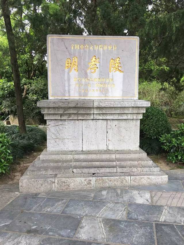 明孝陵是明代开国皇帝朱元璋和皇后马氏的合葬陵墓,2003年3月17日申报是世界文化遗产名录。现为世界文化遗产国家5A级风景区。坐落在紫金山南独龙阜玩珠峰下,东毗中山陵,南临梅花山,是南京最大的帝王陵墓,也是我国古代最大的帝王陵寝之一。独龙阜北依钟山主峰,阜高150米,林壑幽深,紫气蒸腾,云霭山色,变幻无穷,自古就有“发地多奇岭,千云非一状”的说法。山南是开阔的平原和幽渺的前湖,阳光融融,和风习习,生机勃勃。依山傍水,坐北朝南,的确堪称是风水宝地。明孝陵修建工程从洪武十四年动工,于洪武十六年完成了陵墓的享殿等主体工程,到永乐十一年整个陵园建筑才告结束,前后历时32年,动用10万军工。其总体布局分两部分:一是导引建筑的神道, 二是陵寝主体建筑。 由卫岗的下马坊至文武方门的神道长大2400米。沿神道依次有:下马坊、禁约碑、大金门、神功圣德碑碑亭、御桥、石象路、石望柱、武将、文臣、棂星门。过棂星门折向东北,便进入陵园的主体部分。这条正对独龙阜的南北轴线上依次有:金水桥、文武方门、孝陵门、孝陵殿、内红门、方城明楼、宝顶等建筑。明孝陵地面木结构建筑大多毁于1853年清军与太平军之战,现仅存下马坊、禁约碑、内红门、碑亭中壁、石像路、方城明楼下部等砖石建筑。明孝陵布局宏雄,规制严谨,陵神道开了弯而且长的先例并影响了明清两代。陵园纵深2.6公里, 当年围绕的红墙周长22.5公里。明孝陵布局呈“北斗星”图。孝陵的神道以弯曲幽长有别于历代帝王的宽阔直接,一直使人们百思不得其解,并由此附会出很多传说。这一新发现解释了这一离奇现象:古代帝王陵墓中有采用天宫、天象、星宿图的情况,意在“天人合一”、“魂归北斗”的效果,而朱元璋尤其对天象崇仰,因而在生前就把自己的陵墓设计成北斗七星的形状,“勺头”为绕梅花山而环行的导引神道部分,“勺柄”为正北方向直线排列的陵寝建筑部分,“勺头”、“勺柄”上的“七星”依次为四方城、神道望柱、棂星门、金水桥、文武坊门、享殿、宝城。从平面图上看,孝陵的“七星”排列走向与南北朝、辽代、唐代所绘制的“北斗七星” 图是相同的。考古人员还发现,孝陵的地下玄宫也呈勺子状,而且朱元璋的安葬地确切在明孝陵,而非民间传说中的其它地方。这一说法遭到有关人士的质疑,其直接证据是弯曲的神道是明成祖朱棣所建,而非其父朱元璋亲为,“北斗七星”一说是巧合。