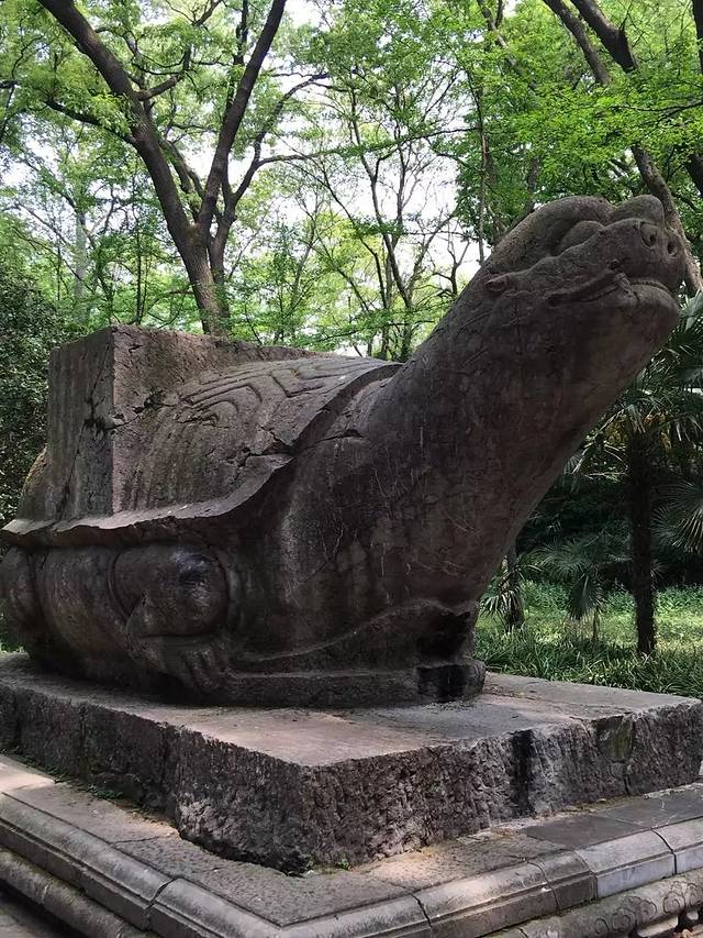 灵谷深松碑。原龟坐上的四个大字的碑不见了。