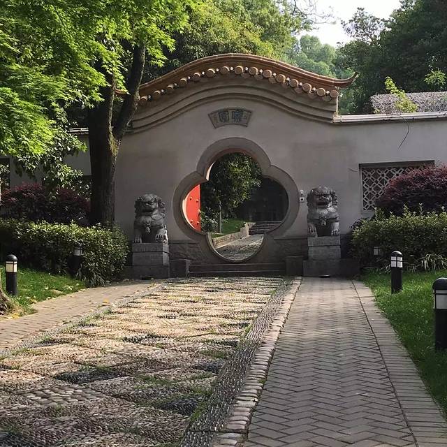 这是国民革命军阵亡将士公墓牌坊。牌坊台基长32.7米,宽16.6米,牌坊高10米,共五间,全部以钢筋混凝土构筑,座基外镶花岗石,绿色琉璃瓦覆顶。牌坊前中门门额上横刻“大仁大义”四字,背面刻“救国救民”四字,均为张静江题书。牌坊前左右两侧有一对石虎,为当时的陆军第十七军所赠送。