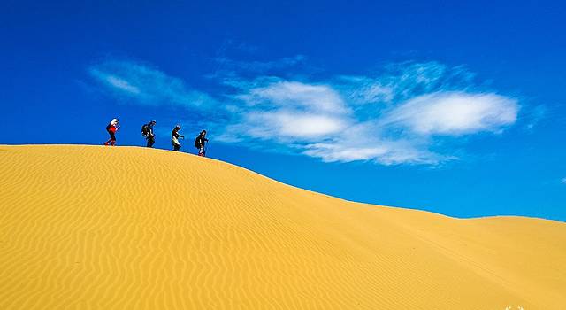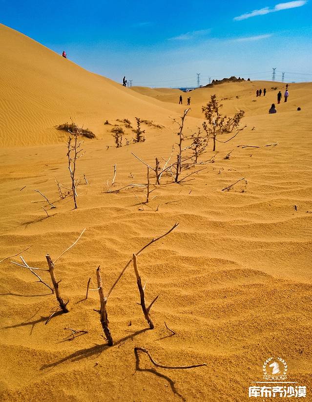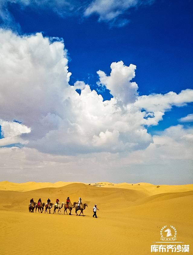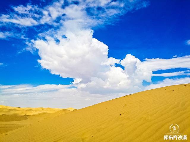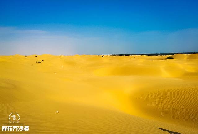 6月9号早上8点左右,我们顺利的到达了号称“中国第七大沙漠”的库布齐沙漠。天气很好,蓝天白云,金黄色的沙丘,简直一幅电脑桌面的景色。