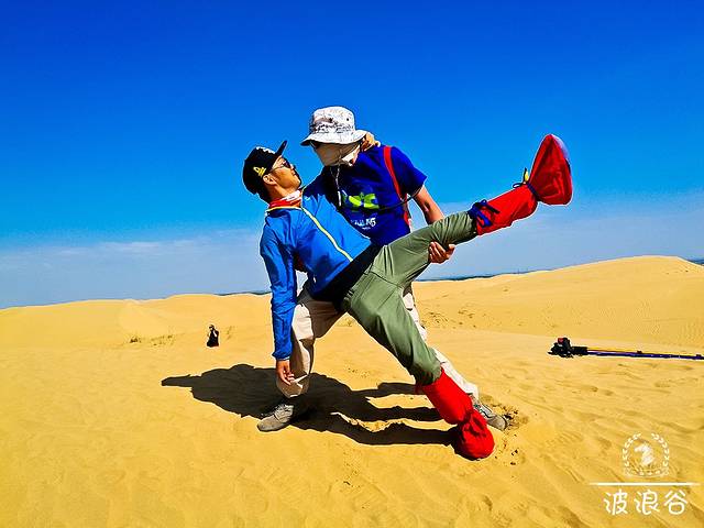 沙漠干燥,微风吹来,你能感到细细的沙粒打在脸上,所以大家都全副武装,鞋套、面罩、帽子等,能带的都带上了。当然,对于游玩的热情是丝毫没有减少。各种pose,各种摆拍,真是不亦乐乎。