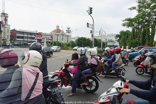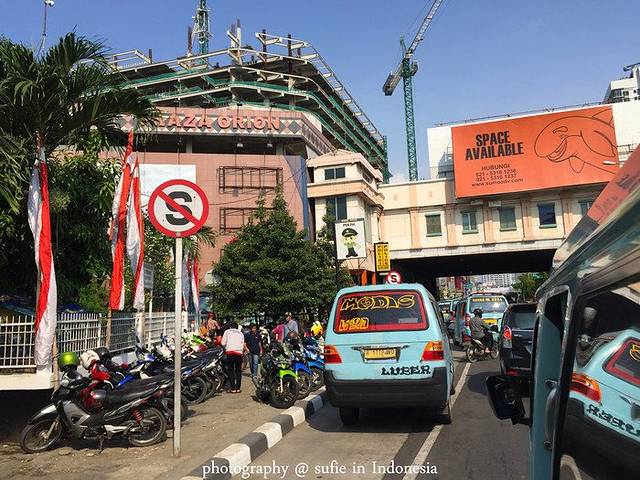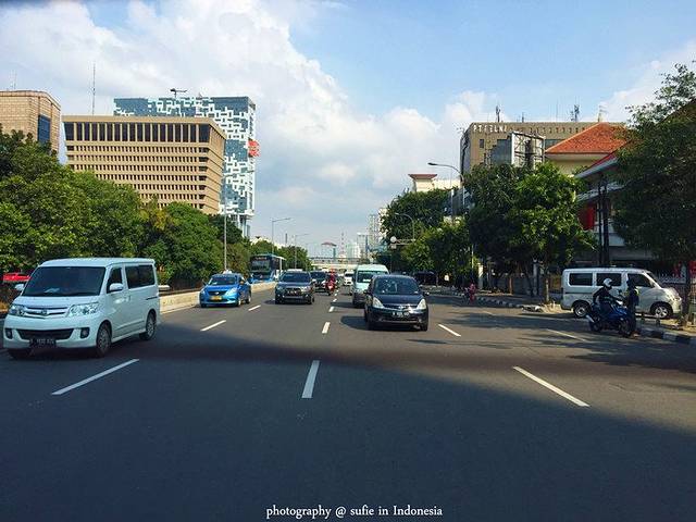 达到雅加达的第一天,出门到马路上最大的感受就是摩托车好多啊,不像中国一些城市开的是电动车,他们全是摩托车,而且还没有专门的摩托车道,所以对于他们来说摩托车和小车的地位是“平等”的,大马路你随便开!当时正赶上红灯变绿灯,先是一群摩托车率先蹭蹭蹭飞过去,后面才看到一排排小车慢慢跟了上来,第一次见到的时候觉得还蛮危险的,不过后面自己在巴厘岛上也加入了摩托车大军后,觉得即使是开摩托车他们也非常遵守交通规则。