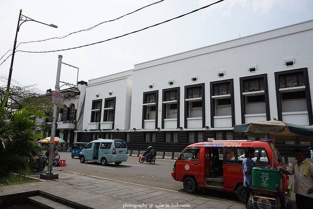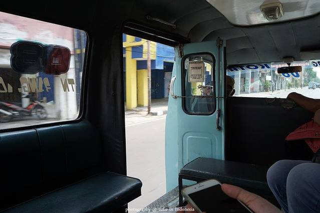 在雅加达,这种蓝色的小车随处可见,不像正规的大巴有专门的公交站台和车道,他们更像是私营的,但是也有固定的路线和号码。在独立广场附近,陈先生告诉我们可以坐8号车去kota,也就是雅加达的老城区,价钱大概是5000卢比一个人,折合人民币2块5左右。车行进的过程中,车门是全程不关的,你要下车,敲敲车顶司机就会停车,下车后再把钱给司机。