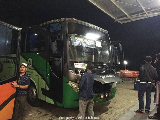 在酒店,我们和陈先生说之后我们要去日惹的行程,他还关心地问我们提前买好票没,我们说火车票没买到,但是提前买好了汽车票。退房的时候,陈先生特别帮我们通过grabcar这个打车软件叫了车,他说用这个打车软件打车,价钱是提前定好的,不会向Uber一样根据里程和时间算钱,这也避免了一些司机绕路的现象。当他说到要帮我们打车的时候,我们简直太感动了,当时在机场时候打了Uber,结果因为语言不通各种问题没有成功,有了当地人打车说好价钱真是太好了。我们买的票是Handoyo公司下午6点半的车,从雅加达前往日惹,按正常时间是10个小时能够达到日惹。因为买票时候买的车站叫做Terminal bus rawa mangun,所以陈先生也是直接和司机说前往这个地方。从市区前往Terminal pulo gadung大概花了半个小时左右,但是车费只花了30度块钱。下了车之后,我们是一脸懵逼的,车站简直太破,根本没有什么标识,估计也只有本地人才能搞得懂了。我们拿出在国内打印好的纸质订单问司机我们应该在哪坐车,他也不知道。他拿着我们的单子给了路边的人,那个人接下了单子,看了下,就对我们说follow me。他拿着我们的订单一路往前奔,我们也只好跟上,左绕右绕到了一辆大巴旁边,然后大巴的工作人员叫立马帮我把行李拿上了车,叫我们上去。我们一脸纳闷,跟他解释说我们是6点半的车,现在才5点,不是这趟。但是他说same company,same company,意思是都是同一家公司的,可以上。