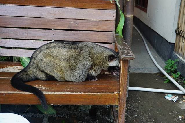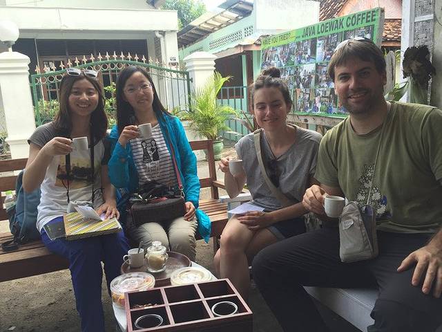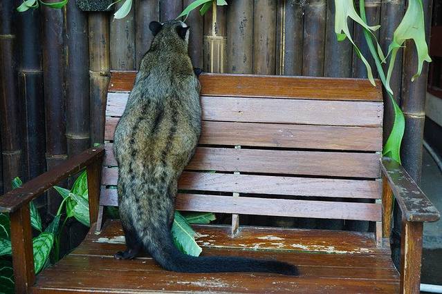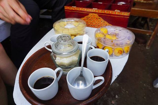 我们在老板咖啡店门外的座椅上坐了下来,老板很热心的给我们上了一些点心,还把刚煮好的猫屎咖啡给我们每个人到了一杯。哇,真的好苦啊。对于我这种平时不喝咖啡的人来说,完全不知道评判咖啡的好坏。不过冲着这种咖啡产生的神奇过程就足够吸引我了。