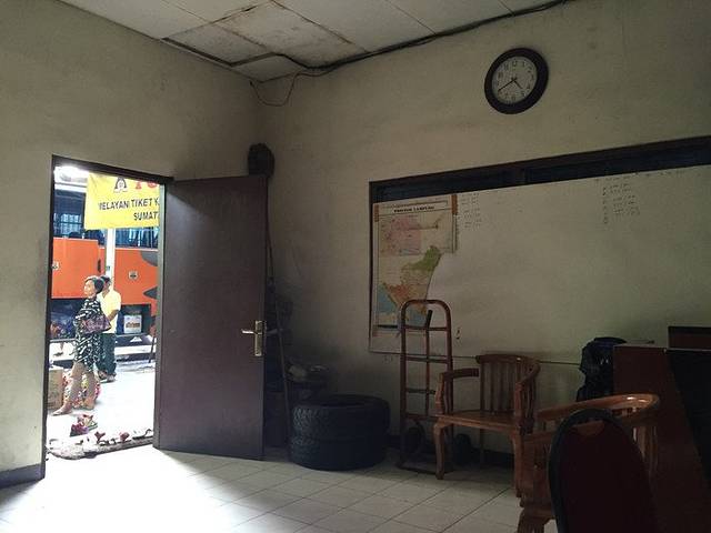 上了车之后不久,车就开了。车上人不多,我们随便找了个位置坐了下来,心想:难道这和之前打的是一码事,随便坐哪辆都能到?但是达到的地方总不会都一样吧。就在心里忐忑不安的时候,车子却到达了一个站停了下来,然后听见工作人员叫我们下车,我们拿好行李下车,跟着他到了一个办公室里面,他帮我们把订单给办公室里的工作人员,然后办理了车票。到那时我们才明白,这个是他们handoyo公司的车站,在这里办好车票,然后候车,等到时间了会有人广播再上车。