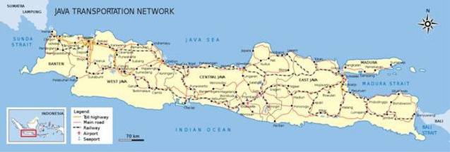 印尼的铁路以雅加达为中心点。贯穿爪哇岛的大部分地区。