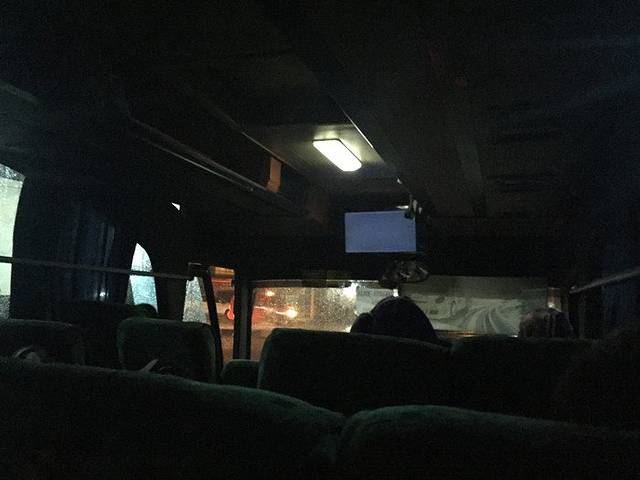 车还没有来,外面竟下起了倾盆大雨,热带地方真是说下雨就下雨。临近7点,雨也渐渐小了,小哥又再一次出现了,这回是叫我们上车了。行李麻利的帮我们拖了起来,装进了大巴的行李库,叫我们把车票给他,跟着他上了车,带着我们找到了位置坐下。还和大巴的工作人员打了声招呼,估计是叫他帮忙照顾着点吧。安稳地坐在了座位上,心里真的很感谢这一路下来帮助我们的当地人,对接下来的旅行也充满的期待。
