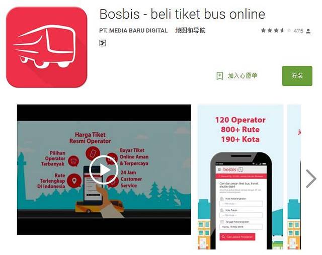 最后没买到火车票,只好查了查汽车票,还好,汽车票还有位置,兔二爷在google上搜索到了一个叫做Bosbis的网站,这个也有安卓的APP版本,但是ios版本的我没有搜到,估计是没有。这个软件上有出售印尼爪哇岛上各大城市之间的长途汽车票,但是只能通过visa支付。