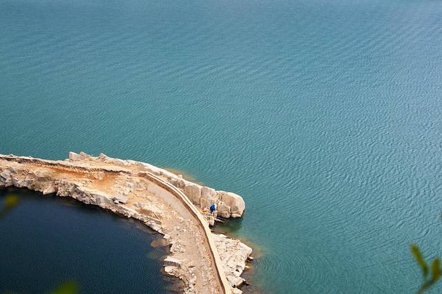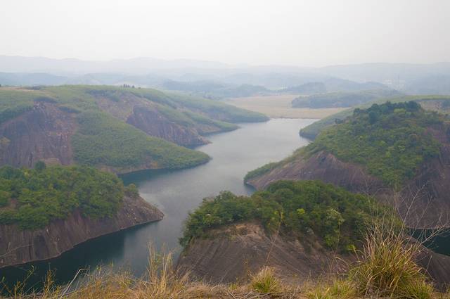 高椅岭被一潭绿水包围着,这是个堰塞湖。