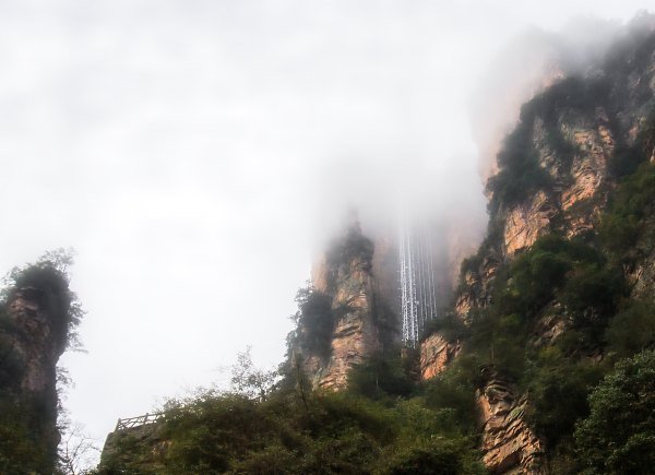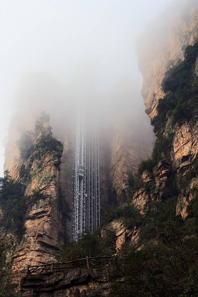 百龙天梯的对面就是将军列阵景点,此时被雾气笼罩,虽然没能见得全貌,但我感觉这样更加神秘。排队1个多小时终于坐上了天梯,66秒急速直达山顶,简直太刺激了。